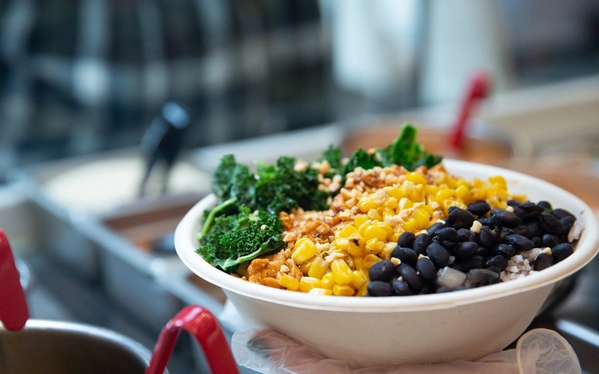 Gm was helpful and guided my wife and I through the ordering/building process of the bowl. They are highly accommodating to most food allergies, including celiacs, which was a huge plus for my wife. The food was delicious and fresh, nothing looked like it had been sitting out for hours on end. Would highly recommend giving it a try if youโre in the area. Vegetarian options: Tofu options available Dietary restrictions: There are vegetarian, vegan, celiac, dairy-free, and keto options available. Wheelchair accessibility: There is a handicap parking space directly outside the entrance with easy access to the building and plenty of accommodation inside seating as well.
